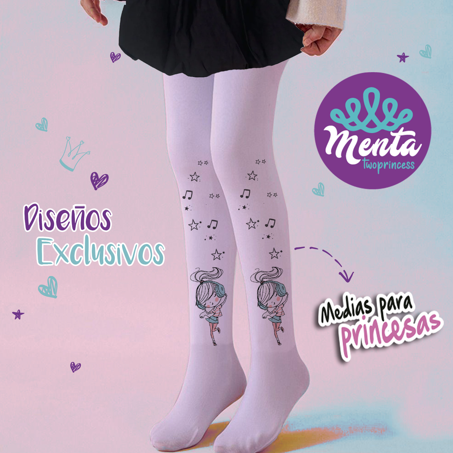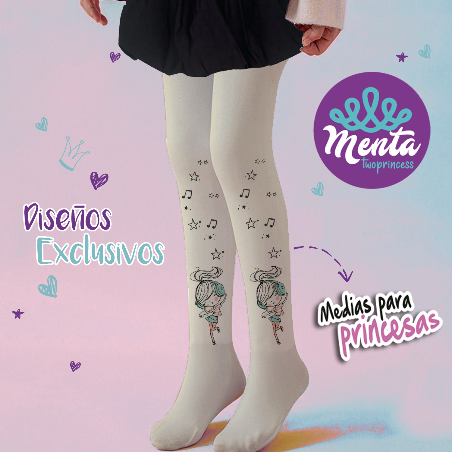 Media pantalon Ref: Musicgirl estampada en microfibra, para princesas.